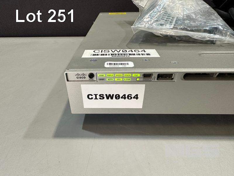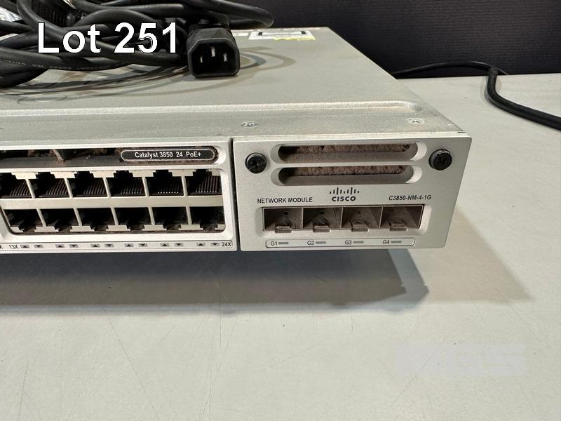 CISCO CATALYST 3850 24 PoE+ 24-PORT SWITCH, WS-C3850-24P-L V07 C3850-NM-4-1G NETWORK MODULE, 2 x PWR-C1-715WAC PSU WITH IEC-C14 TO C15 NOTCH POWER CABLES S/N:FOC1943U1T5
