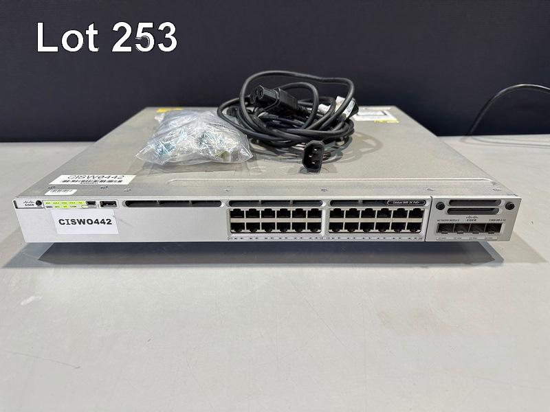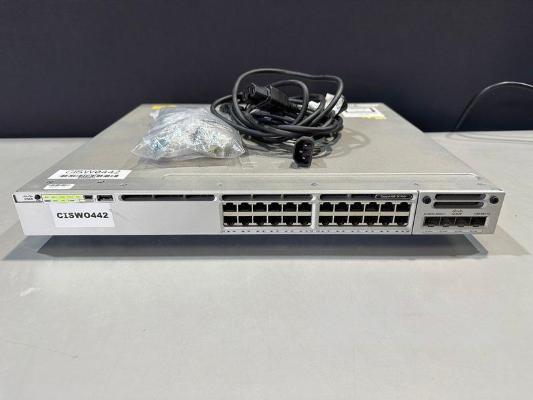 CISCO CATALYST 3850 24 PoE+ 24-PORT SWITCH, WS-C3850-24P-L V07 C3850-NM-4-1G NETWORK MODULE, 2 x PWR-C1-715WAC PSU WITH IEC-C14 TO C15 NOTCH POWER CABLES S/N:FCW1944C1RQ