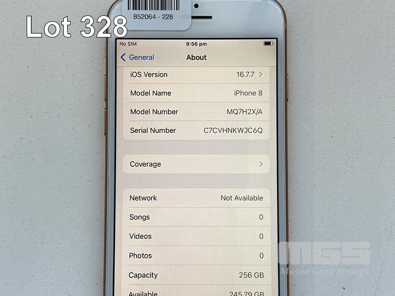 APPLE iPHONE 8, 256GB, GOLD, MODEL MQ7H2X/A, BATTERY HEALTH 88% (NO CABLE, NO CHARGER) S/N:C7CVHNKWJC6Q