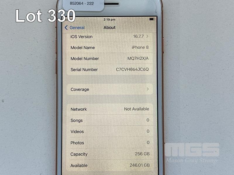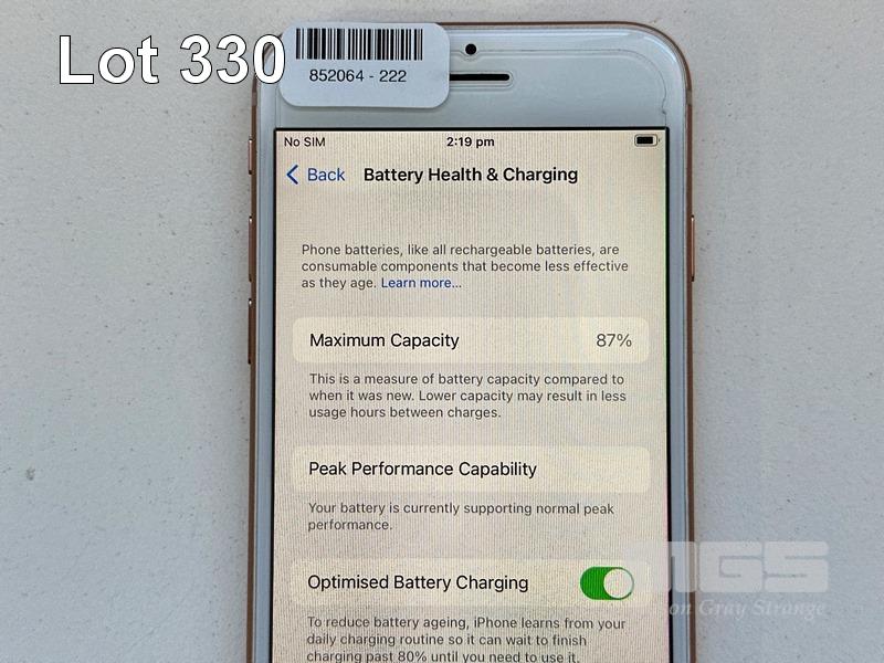 APPLE iPHONE 8, 256GB, GOLD, MODEL MQ7H2X/A, BATTERY HEALTH 87% (NO CABLE, NO CHARGER) S/N:C7CVH064JC6Q