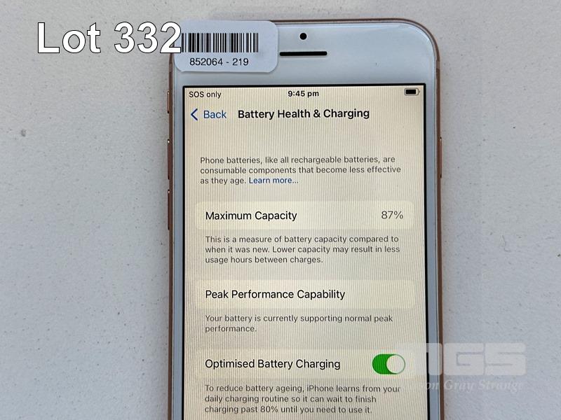 APPLE iPHONE 8, 256GB, GOLD, MODEL MQ7H2X/A, BATTERY HEALTH 87% (NO CABLE, NO CHARGER) S/N:C7CVH5ELJC6Q