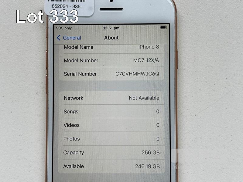 APPLE iPHONE 8, 256GB, GOLD, MODEL MQ7H2X/A, BATTERY HEALTH 86% (NO CABLE, NO CHARGER) S/N:C7CVHMHWJC6Q
