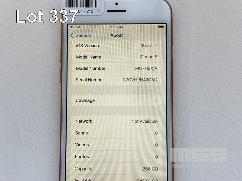 APPLE iPHONE 8, 256GB, GOLD, MODEL MQ7H2X/A, BATTERY HEALTH 84% (NO CABLE, NO CHARGER) S/N:C7CVHPH4JC6Q