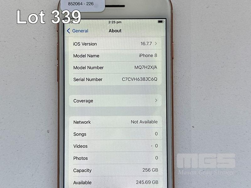APPLE iPHONE 8, 256GB, GOLD, MODEL MQ7H2X/A, BATTERY HEALTH 83% (NO CABLE, NO CHARGER) S/N:C7CVH638JC6Q