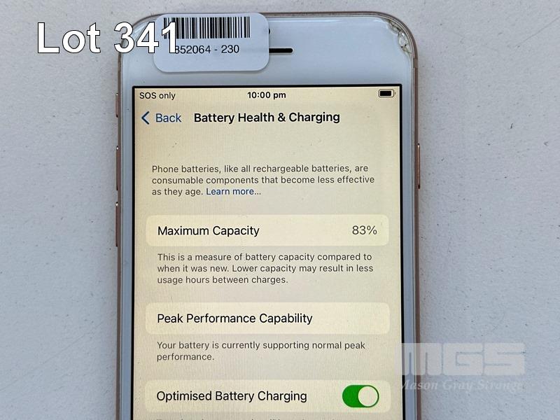 APPLE iPHONE 8, 256GB, GOLD, MODEL MQ7H2X/A, BATTERY HEALTH 83% (NO CABLE, NO CHARGER) (NOTE: DAMAGED CASING) S/N:C7CVHJZCJC6Q