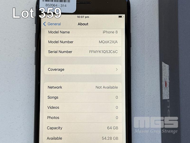 APPLE iPHONE 8, 64GB, SPACE GREY, MODEL MQ6K2X/A, BATTERY HEALTH 92% (NO CABLE, NO CHARGER) S/N:FFMYK1Q5JC6C