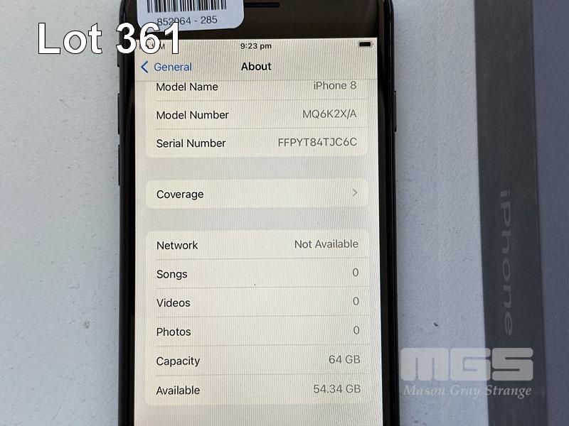 APPLE iPHONE 8, 64GB, SPACE GREY, MODEL MQ6K2X/A, BATTERY HEALTH 92% (NO CABLE, NO CHARGER) S/N:FFPYT84TJC6C