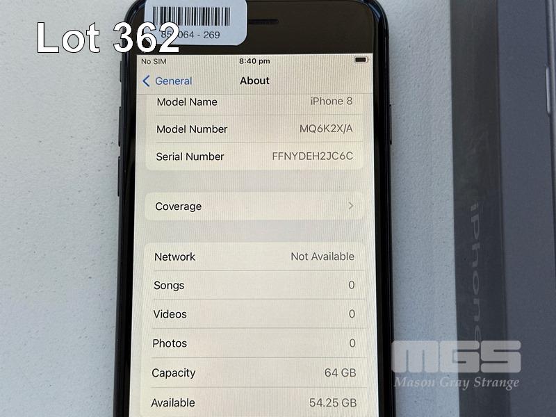 APPLE iPHONE 8, 64GB, SPACE GREY, MODEL MQ6K2X/A, BATTERY HEALTH 92% (NO CABLE, NO CHARGER) S/N:FFNYDEH2JC6C