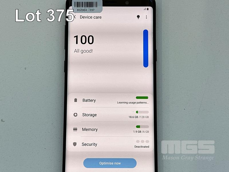 SAMSUNG GALAXY NOTE9 SMARTPHONE, 128GB, BLACK, MODEL SM-N960F (NO USB-C CABLE, NO CHARGER) S/N:RF8K82JEEQZ
