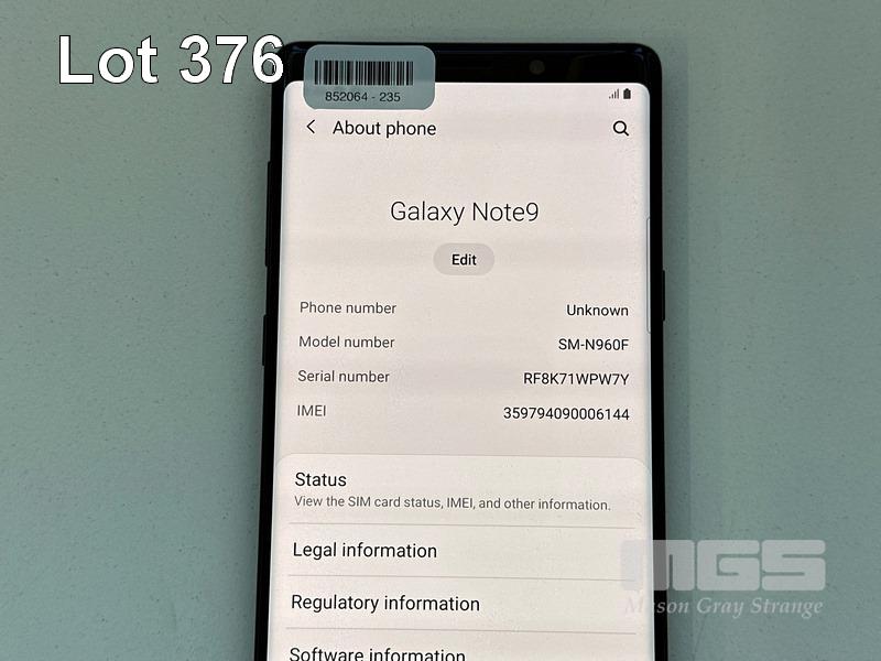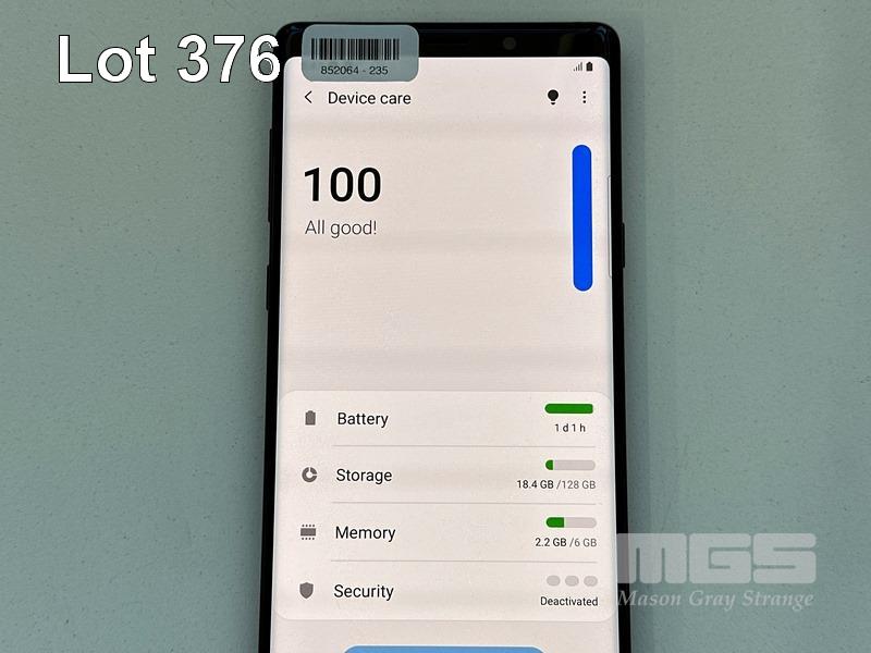 SAMSUNG GALAXY NOTE9 SMARTPHONE, 128GB, BLACK, MODEL SM-N960F (NO USB-C CABLE, NO CHARGER) S/N:RF8K71WPW7Y