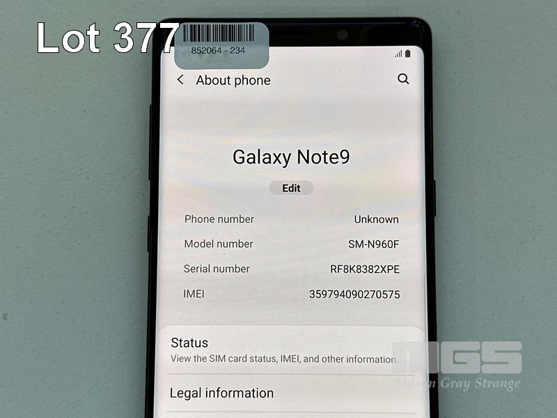 SAMSUNG GALAXY NOTE9 SMARTPHONE, 128GB, BLACK, MODEL SM-N960F (NO USB-C CABLE, NO CHARGER) S/N:RF8K8382XPE