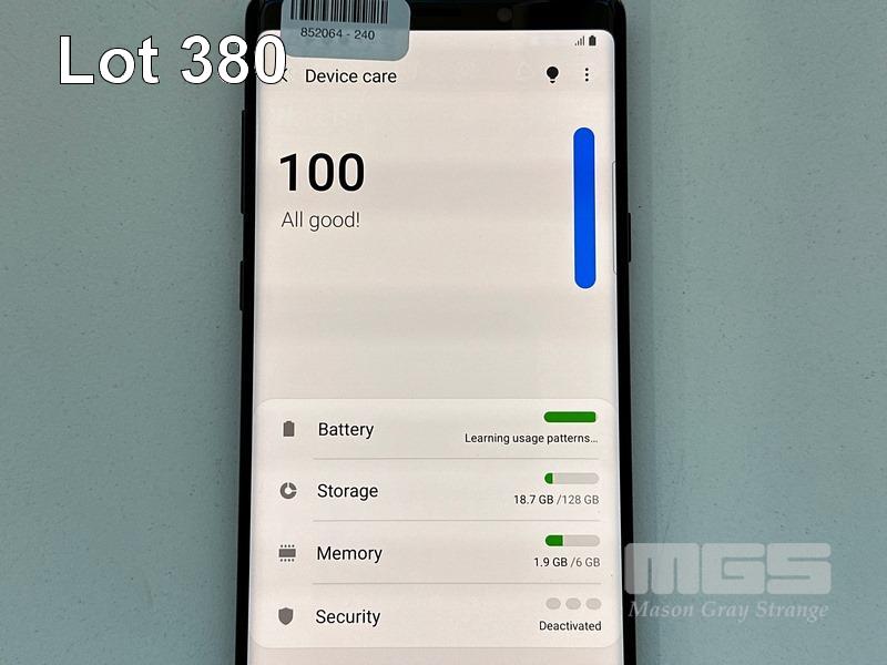 SAMSUNG GALAXY NOTE9 SMARTPHONE, 128GB, BLACK, MODEL SM-N960F (NO USB-C CABLE, NO CHARGER) S/N:R58K85A26HH