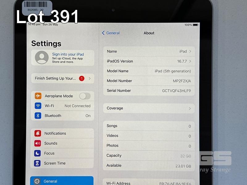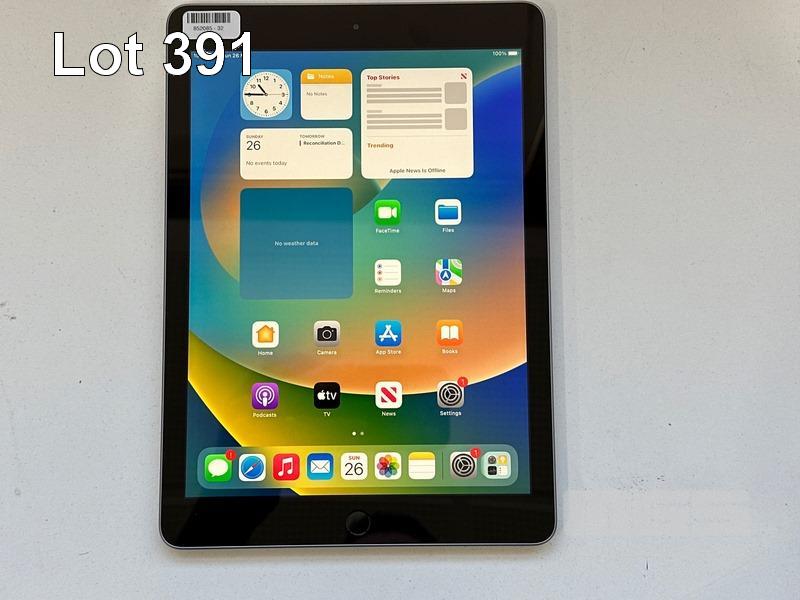 APPLE iPAD 5TH GEN, 32GB, Wi-Fi, SPACE GREY, MODEL MP2F2X/A, A1822 (NO CABLE, NO CHARGER) S/N:GCTVQF43HLF9