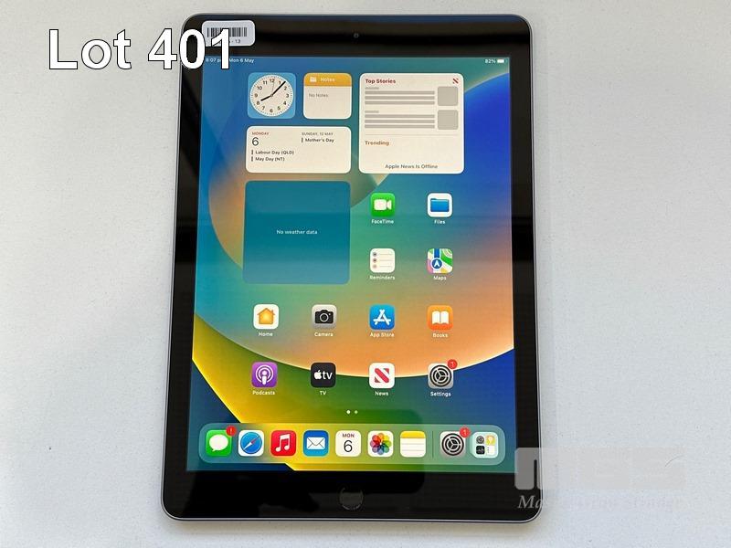 APPLE iPAD 5TH GEN, 32GB, Wi-Fi, SPACE GREY, MODEL MP2F2X/A, A1822 (NO CABLE, NO CHARGER) S/N:GCTVQXNRHLF9