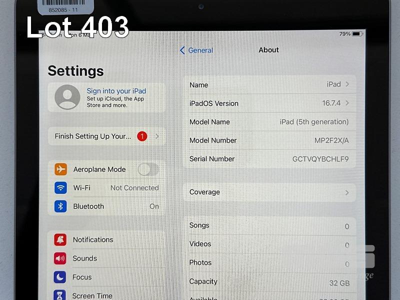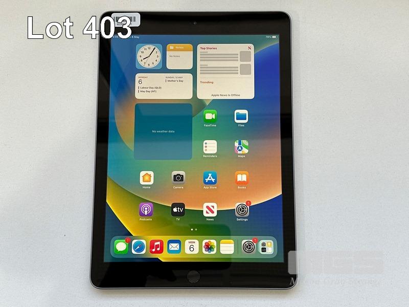 APPLE iPAD 5TH GEN, 32GB, Wi-Fi, SPACE GREY, MODEL MP2F2X/A, A1822 (NO CABLE, NO CHARGER) S/N:GCTVQYBCHLF9
