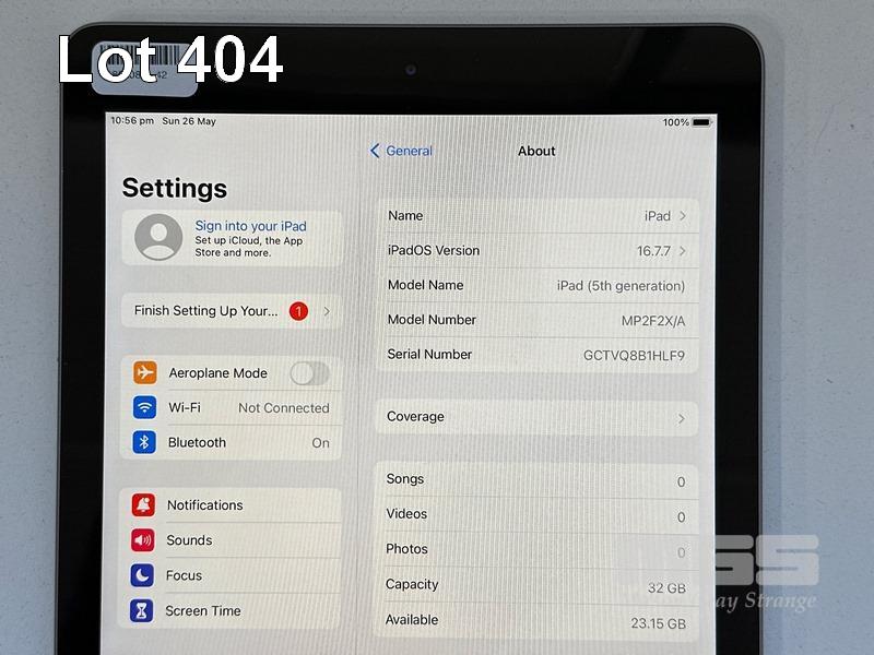 APPLE iPAD 5TH GEN, 32GB, Wi-Fi, SPACE GREY, MODEL MP2F2X/A, A1822 (NO CABLE, NO CHARGER) S/N:GCTVQ8B1HLF9
