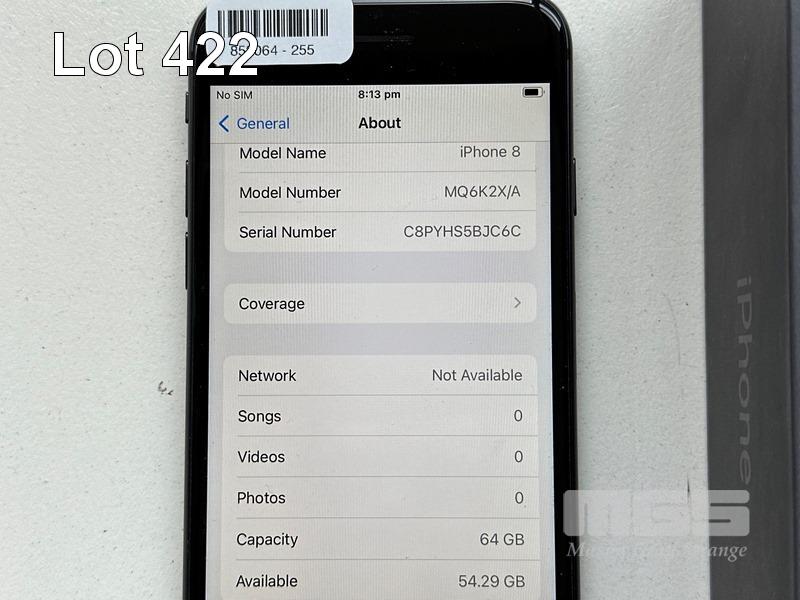 APPLE iPHONE 8, 64GB, SPACE GREY, MODEL MQ6K2X/A, BATTERY HEALTH 89% (NO CABLE, NO CHARGER) S/N:C8PYHS5BJC6C