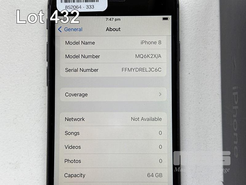 APPLE iPHONE 8, 64GB, SPACE GREY, MODEL MQ6K2X/A, BATTERY HEALTH 87% (NO CABLE, NO CHARGER) S/N:FFMYDRELJC6C