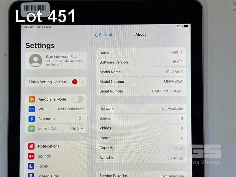 APPLE iPAD AIR 2, 32GB, Wi-Fi, CELLULAR, SPACE GREY, MODEL MNVP2X/A, A1567 (NO CABLE, NO CHARGER) S/N:DMPSR2CUHG6R