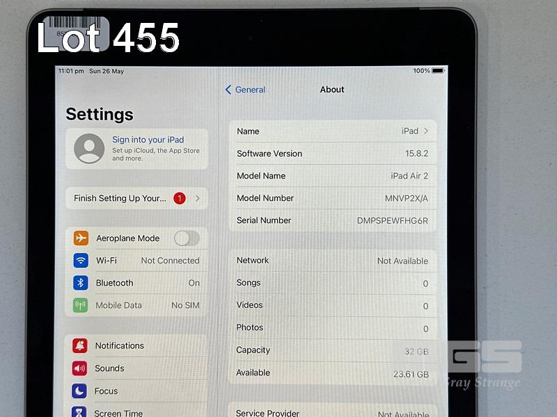 APPLE iPAD AIR 2, 32GB, Wi-Fi, CELLULAR, SPACE GREY, MODEL MNVP2X/A, A1567 (NO CABLE, NO CHARGER) S/N:DMPSPEWFHG6R