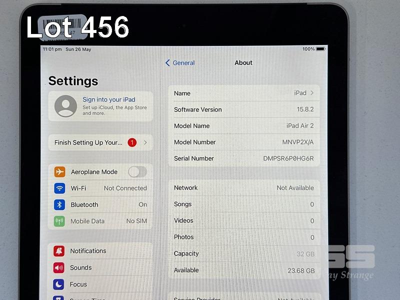 APPLE iPAD AIR 2, 32GB, Wi-Fi, CELLULAR, SPACE GREY, MODEL MNVP2X/A, A1567 (NO CABLE, NO CHARGER) S/N:DMPSR6P0HG6R