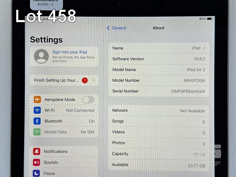 APPLE iPAD AIR 2, 32GB, Wi-Fi, CELLULAR, SPACE GREY, MODEL MNVP2X/A, A1567 (NO CABLE, NO CHARGER) S/N:DMPSP3B6HG6R