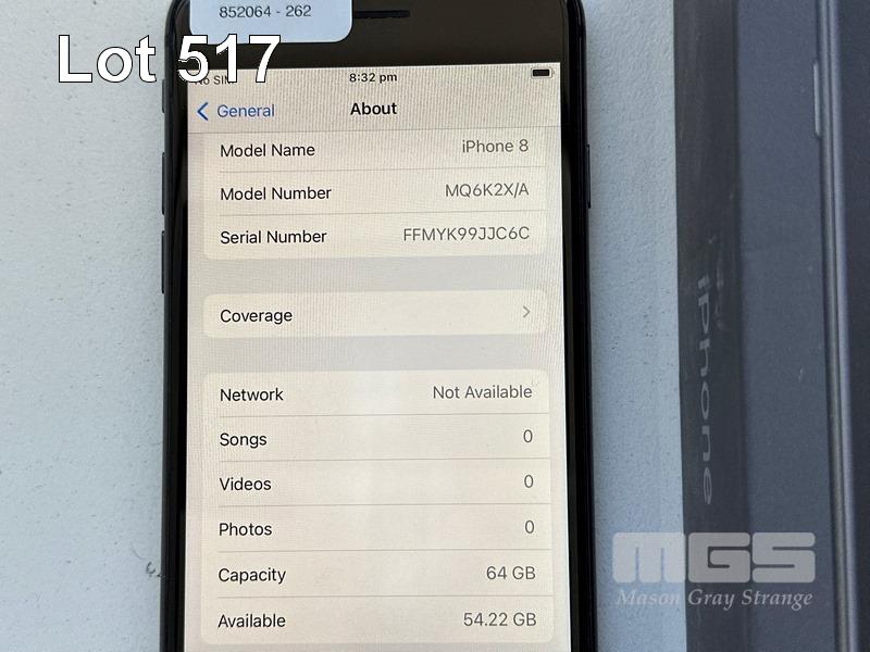 APPLE iPHONE 8, 64GB, SPACE GREY, MODEL MQ6K2X/A, BATTERY HEALTH 85% (NO CABLE, NO CHARGER) S/N:FFMYK99JJC6C