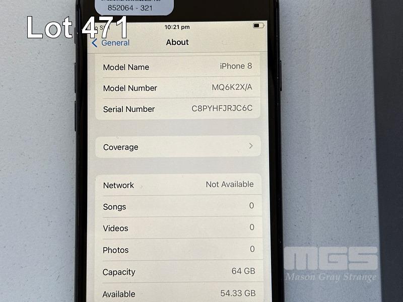 APPLE iPHONE 8, 64GB, SPACE GREY, MODEL MQ6K2X/A, BATTERY HEALTH 84% (NO CABLE, NO CHARGER) S/N:C8PYHFJRJC6C
