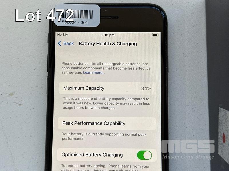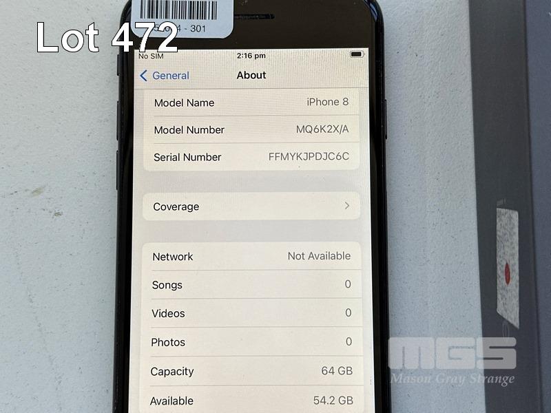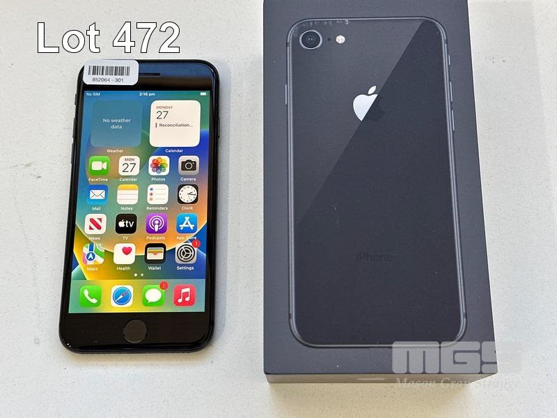 APPLE iPHONE 8, 64GB, SPACE GREY, MODEL MQ6K2X/A, BATTERY HEALTH 84% (NO CABLE, NO CHARGER) S/N:FFMYKJPDJC6C