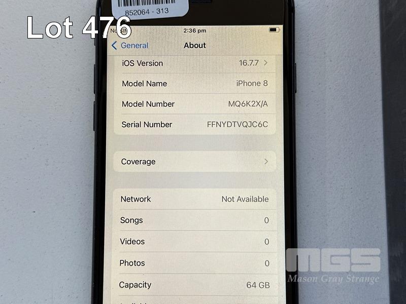 APPLE iPHONE 8, 64GB, SPACE GREY, MODEL MQ6K2X/A, BATTERY HEALTH 83%