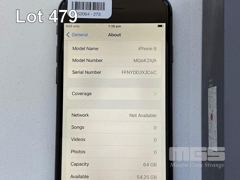 APPLE iPHONE 8, 64GB, SPACE GREY, MODEL MQ6K2X/A, BATTERY HEALTH 82% (NO CABLE, NO CHARGER) S/N:FFNYDDJXJC6C