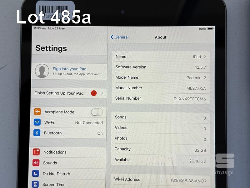APPLE iPAD MINI 2, 32GB, Wi-Fi, SPACE GREY, MODEL ME277X/A, A1489 (NO CABLE, NO CHARGER) S/N:DLXNX9TEFCM6