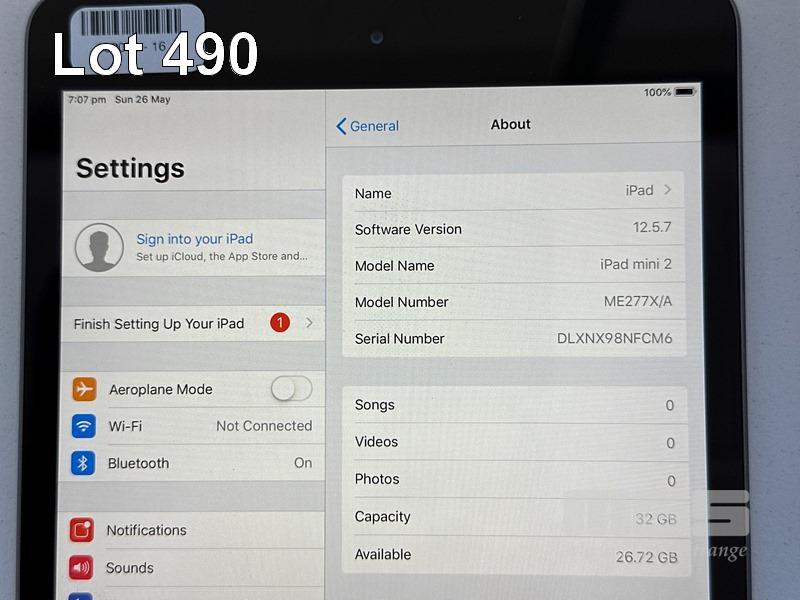 APPLE iPAD MINI 2, 32GB, Wi-Fi, SPACE GREY, MODEL ME277X/A, A1489 (NO CABLE, NO CHARGER) S/N:DLXNX98NFCM6
