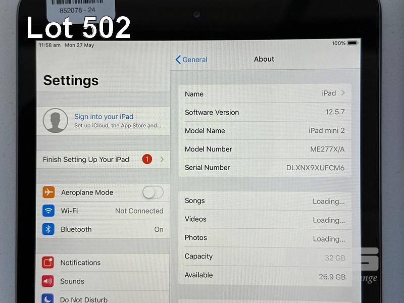 APPLE iPAD MINI 2, 32GB, Wi-Fi, SPACE GREY, MODEL ME277X/A, A1489 (NO CABLE, NO CHARGER) S/N:DLXNX9XUFCM6