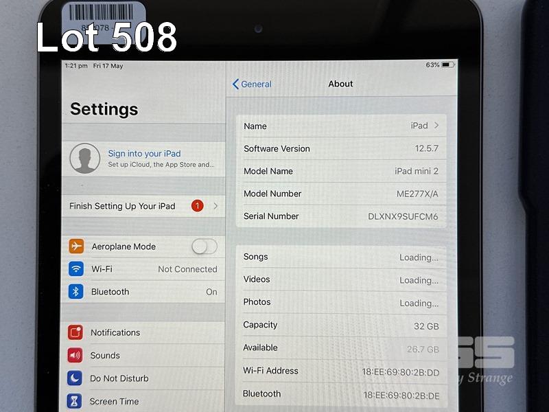 APPLE iPAD MINI 2, 32GB, Wi-Fi, SPACE GREY, MODEL ME277X/A, A1489 (NO CABLE, NO CHARGER) S/N:DLXNX9SUFCM6