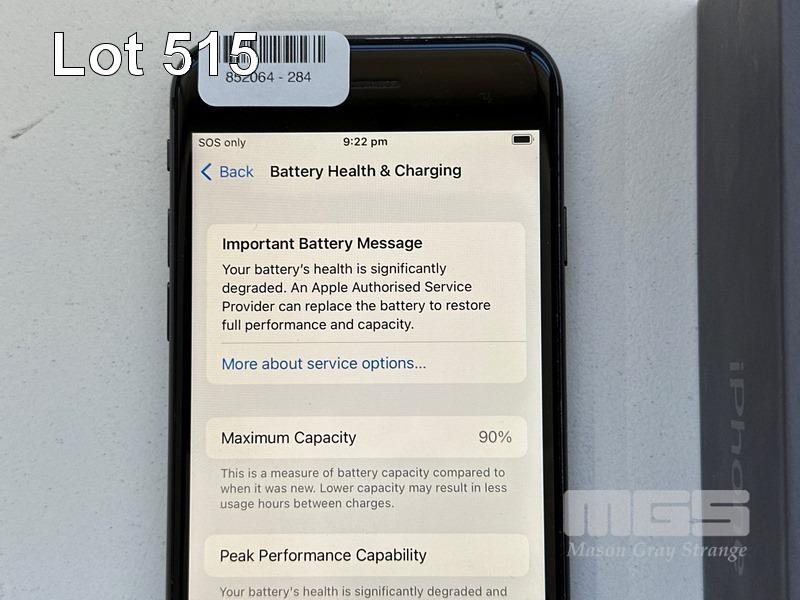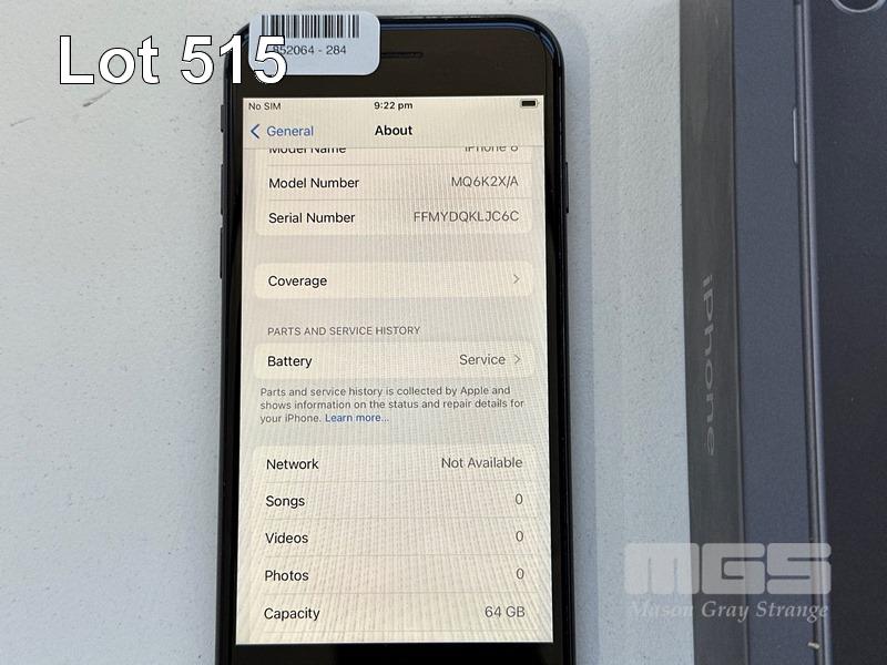 APPLE iPHONE 8, 64GB, SPACE GREY, MODEL MQ6K2X/A, BATTERY HEALTH 90% (NO CABLE, NO CHARGER) (NOTE: BATTERY SERVICE MESSAGE) S/N:FFMYDQKLJC6C