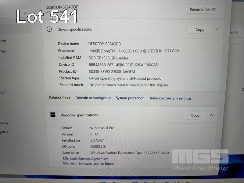 LAPTOP, LENOVO THINKPAD P15 GEN 1 MOBILE WORKSTATION, TYPE 20SU, CORE i7 10850H (10TH GEN) @ 2.7GHz, 32GB DDR4 RAM, 512GB NVMe M.2 SSD, 15.6" WIDESCREEN (1920x1080), 4GB NVIDIA QUADRO T2000 VIDEO, Wi-Fi, BLUETOOTH, WINDOWS 11 PRO INSTALLED & POWER SUPPLY (NOTE: MARKS ON SCREEN) S/N:PF1SRLBR