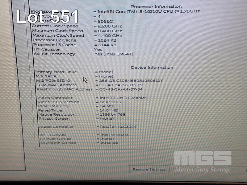 LAPTOP, DELL LATITUDE 5410, CORE i5 10310U (10TH GEN) @ 1.7GHz, 8GB DDR4 RAM, 256GB NVMe M.2 SSD, 14" WIDESCREEN (1366x768), INTEL UHD GRAPHICS, Wi-Fi, BLUETOOTH, WINDOWS 11 PRO INSTALLED & POWER SUPPLY (NOTE: MINOR MARKS ON SCREEN) S/N:4RSL273