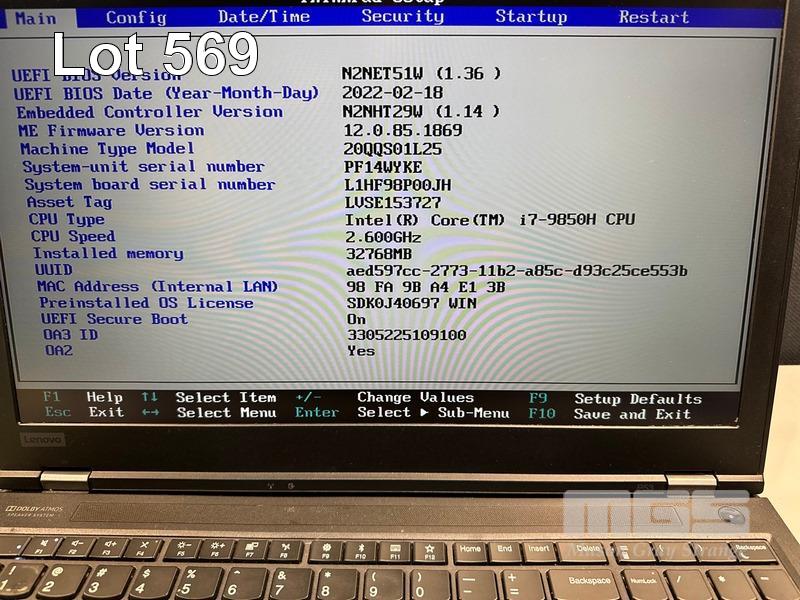 LAPTOP, LENOVO THINKPAD P53 MOBILE WORKSTATION, TYPE 20QQ, CORE i7 9850H (9TH GEN) @ 2.6GHz, 32GB DDR4 RAM, 1TB NVMe M.2 SSD, 15.6" WIDESCREEN (1920x1080), 4GB NVIDIA QUADRO T2000 VIDEO, Wi-Fi, BLUETOOTH, WINDOWS 11 PRO INSTALLED & POWER SUPPLY (NOTE: MINOR MARKS ON SCREEN) S/N:PF14WYKE