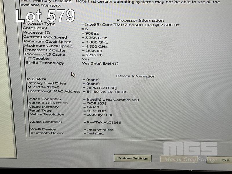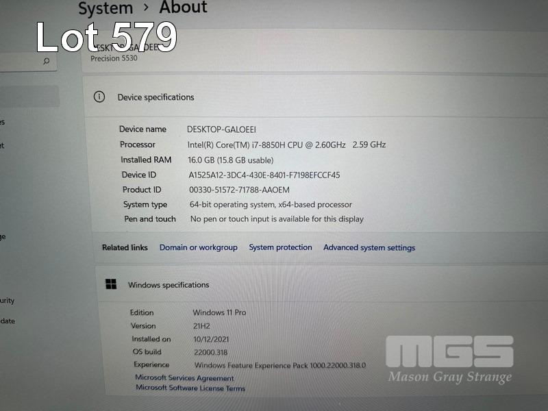 LAPTOP, DELL PRECISION 5530, CORE i7 8850H (8TH GEN) @ 2.6GHz, 16GB DDR4 RAM, 1TB NVMe M.2 SSD, 15.6" WIDESCREEN (1920x1080), 4GB NVIDIA QUADRO P2000 VIDEO, Wi-Fi, BLUETOOTH, WINDOWS 11 PRO INSTALLED & POWER SUPPLY (NOTE: BATTERY NOT HOLDING CHARGE) S/N:7ZS5JR2
