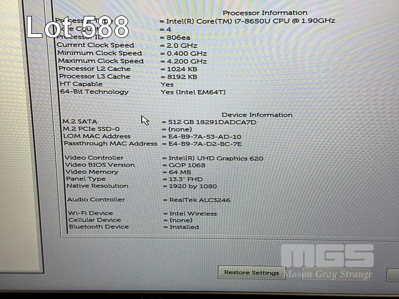 LAPTOP, DELL LATITUDE 7390, CORE i7 8650U (8TH GEN) @ 1.9GHz, 16GB DDR4 RAM, 512GB M.2 SSD, 13.3" WIDESCREEN (1920x1080), INTEL UHD GRAPHICS 620, Wi-Fi, BLUETOOTH, WINDOWS 11 HOME INSTALLED & POWER SUPPLY S/N:6C18JR2