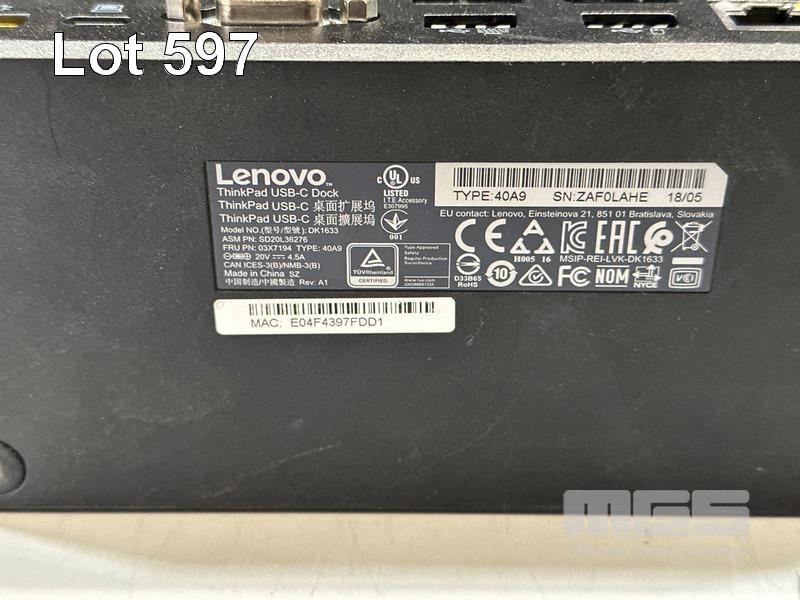 LENOVO THINKPAD USB-C DOCK, MODEL DK1633, TYPE 40A9 WITH 90W POWER SUPPLY & USB-C CABLE