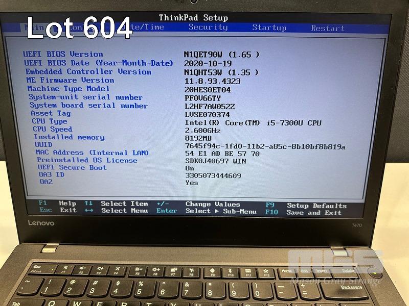 LAPTOP, LENOVO THINKPAD T470, TYPE 20HE, CORE i5 7300U (7TH GEN) @ 2.6GHz, 8GB DDR4 RAM, 256GB NVMe M.2 SSD, 14" WIDESCREEN (1366x768), INTEL HD VIDEO, Wi-Fi, BLUETOOTH, WINDOWS 10 PRO INSTALLED & POWER SUPPLY (NOTE: BATTERY 2 NOT CHARGING) S/N:PF0V66TY