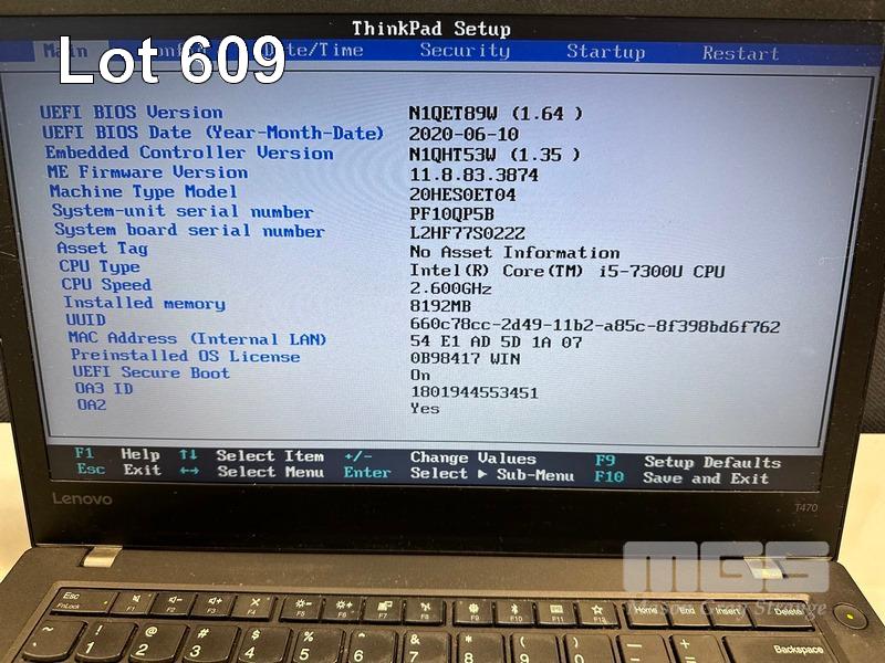 LAPTOP, LENOVO THINKPAD T470, TYPE 20HE, CORE i5 7300U (7TH GEN) @ 2.6GHz, 8GB DDR4 RAM, 256GB NVMe M.2 SSD, 14" WIDESCREEN (1366x768), INTEL HD VIDEO, Wi-Fi, BLUETOOTH, WINDOWS 10 PRO INSTALLED & POWER SUPPLY (NOTE: BATTERY 2 NOT CHARGING, MARKS ON SCREEN) S/N:PF10QP5B