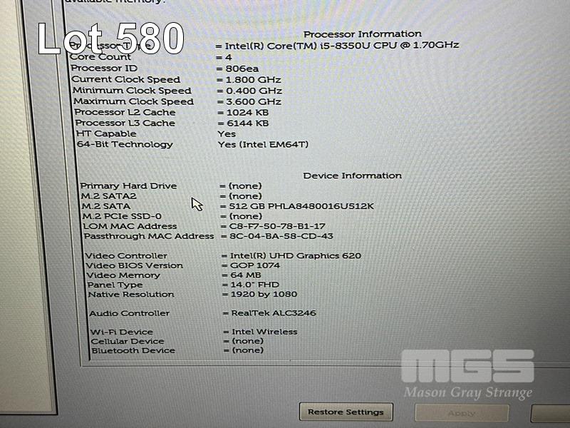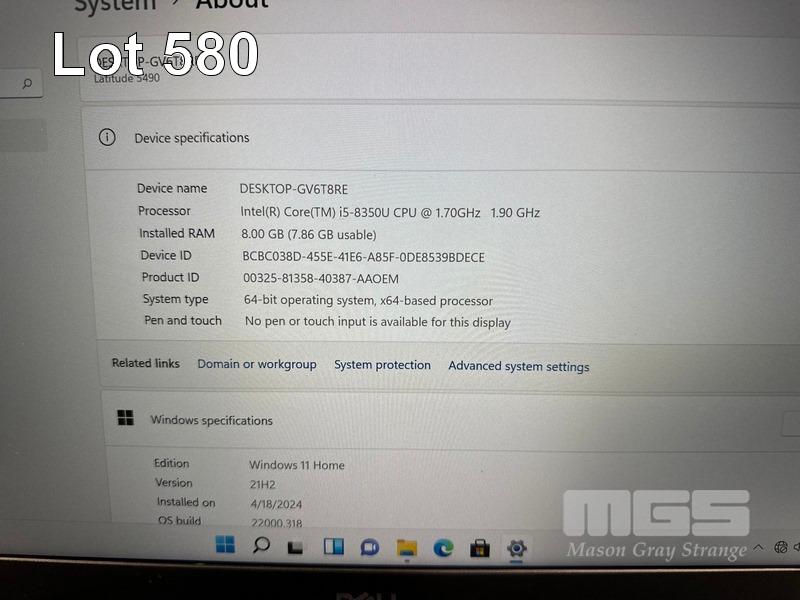LAPTOP, DELL LATITUDE 5490, CORE i5 8350U (8TH GEN) @ 1.7GHz, 8GB DDR4 RAM, 512GB M.2 SSD, 14" WIDESCREEN (1920x1080), INTEL UHD GRAPHICS 620, Wi-Fi, BLUETOOTH, WINDOWS 11 HOME INSTALLED & POWER SUPPLY S/N:J0PGRV2