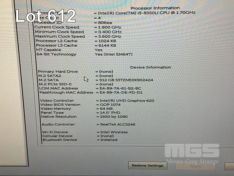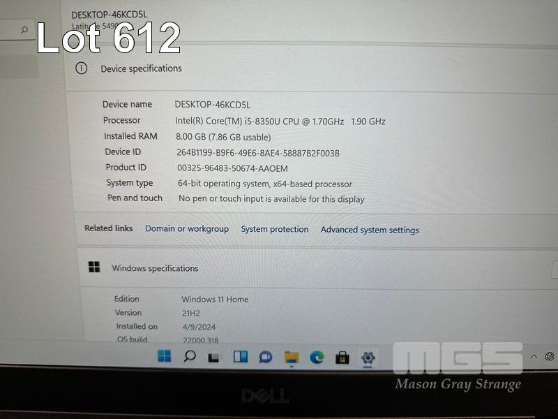LAPTOP, DELL LATITUDE 5490, CORE i5 8350U (8TH GEN) @ 1.7GHz, 8GB DDR4 RAM, 512GB M.2 SSD, 14" WIDESCREEN (1920x1080), INTEL UHD GRAPHICS 620, Wi-Fi, BLUETOOTH, WINDOWS 11 HOME INSTALLED & POWER SUPPLY S/N:7PZ5KR2