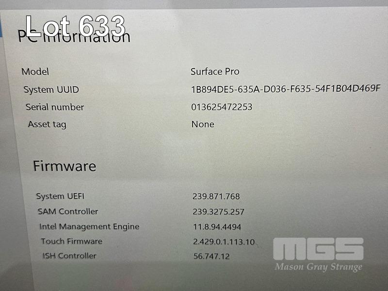 TABLET PC, MICROSOFT SURFACE PRO 5TH GEN, MODEL 1796, CORE m3-7Y30 (7TH GEN) @ 1GHz, 4GB RAM, 128GB SSD, 12.3" TOUCHSCREEN (2736x1824), INTEL HD GRAPHICS 615, Wi-Fi, BLUETOOTH, WINDOWS 10 PRO INSTALLED & KEYBOARD TYPE COVER (NO POWER SUPPLY) S/N:013625472253