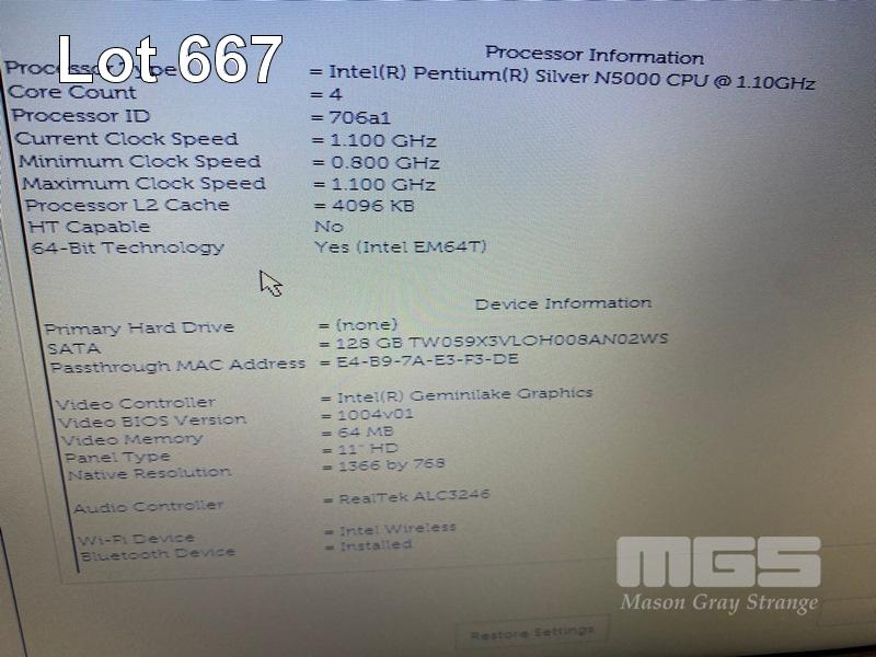 LAPTOP, DELL LATITUDE 3190, PENTIUM SILVER N5000 @ 1.1GHz, 4GB DDR4 RAM, 128GB M.2 SSD, 11.6" WIDESCREEN (1366x768), INTEL UHD GRAPHICS 605, Wi-Fi, BLUETOOTH, WINDOWS 11 PRO EDUCATION INSTALLED & POWER SUPPLY S/N:26966S2