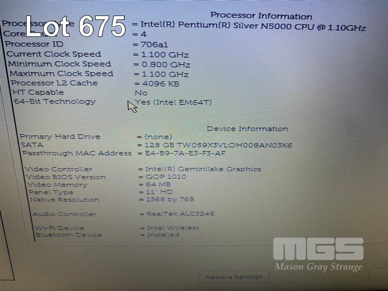LAPTOP, DELL LATITUDE 3190, PENTIUM SILVER N5000 @ 1.1GHz, 4GB DDR4 RAM, 128GB M.2 SSD, 11.6" WIDESCREEN (1366x768), INTEL UHD GRAPHICS 605, Wi-Fi, BLUETOOTH, WINDOWS 11 PRO EDUCATION INSTALLED & POWER SUPPLY S/N:8W556S2