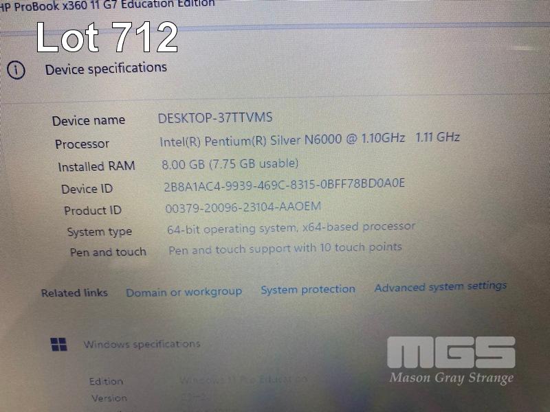 LAPTOP, HP PROBOOK x360 11 G7 EDUCATION EDITION, PENTIUM SILVER N6000 @ 1.1GHz, 8GB DDR4 RAM, 128GB M.2 SSD, 11.6" TOUCHSCREEN (1366x768), INTEL UHD GRAPHICS, Wi-Fi, BLUETOOTH, WINDOWS 11 PRO EDUCATION INSTALLED & POWER SUPPLY S/N:5CG1289LJP